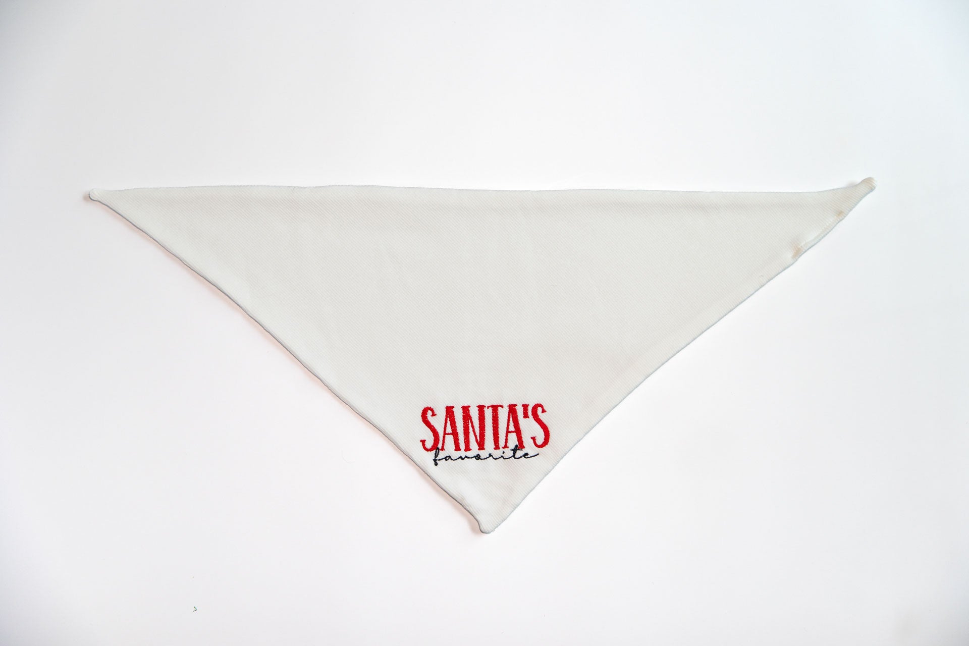 To tie our bandanas, roll them 2-3 times at the top (3-4 times for short-legged pups). Then, place it with the roll to the dogs neck & tie it on.